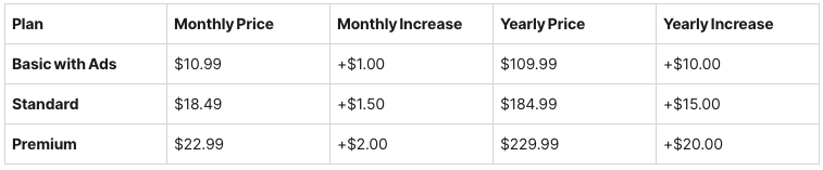 The Basic with Ads monthly plan now costs $10.99, reflecting a $1 increase from the previous rate of $9.99 per month. The annual cost for the Basic with Ads plan is now $109.99, which is a $10 increase from the original price of $99.99.